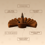 Aauram Sandalwood Incense Cones release a deep, woody fragrance with warm undertones that calm the senses and uplift the spirit. Traditionally cherished in rituals and meditation, sandalwood transforms your space into a serene sanctuary.